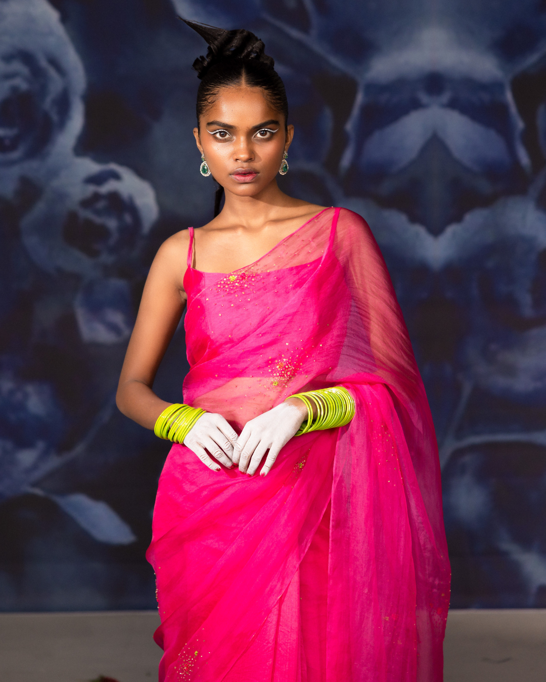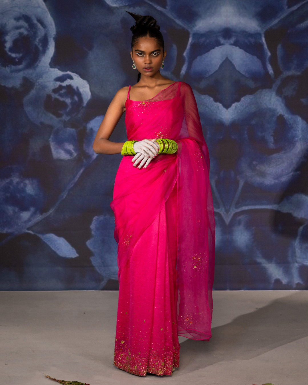 - Saree Fabric: Pink Pure Organza with Chanderi
