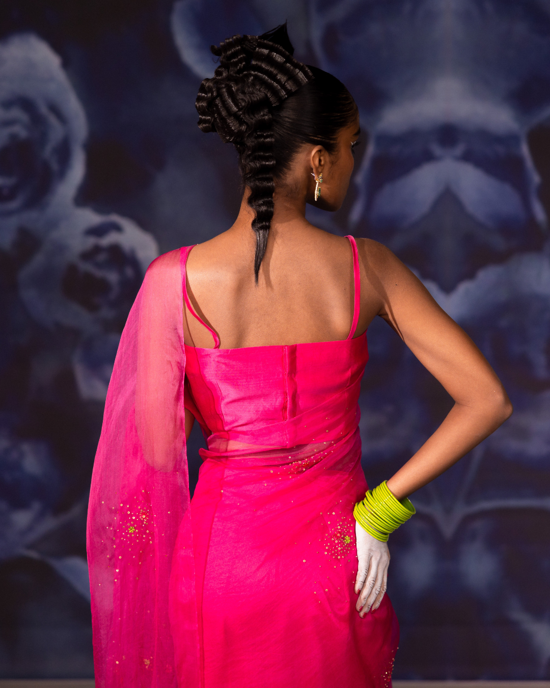 Step into elegance with our Hand Embroidered Pink Organza and Chanderi Saree Set, an ethereal ensemble that blends sheer luxury with modern femininity—ideal for weddings, festive gatherings, or special occasions.