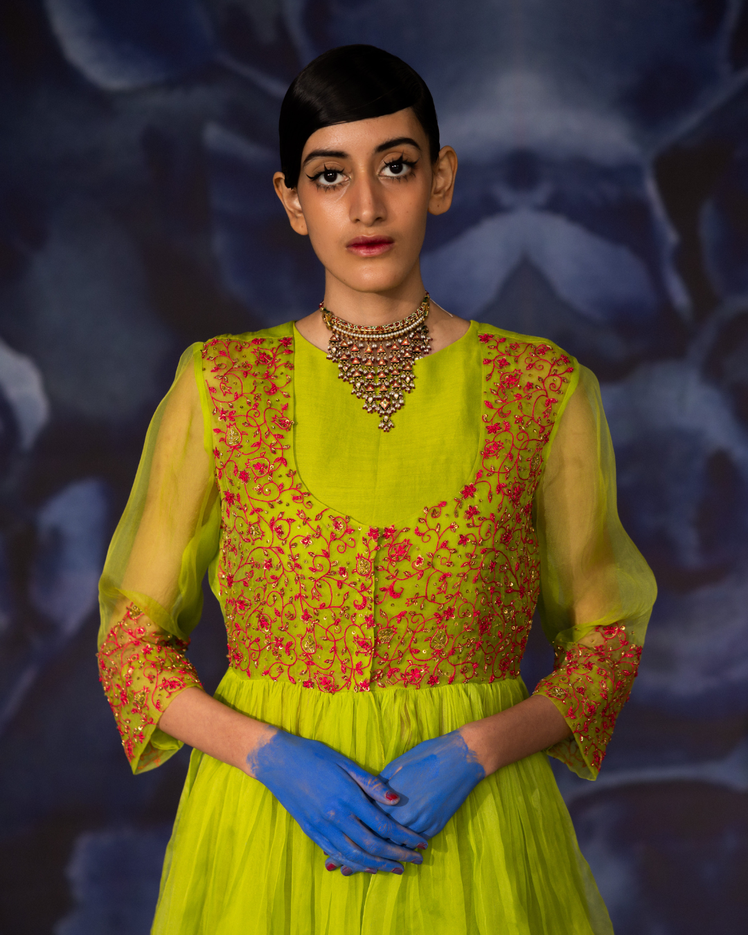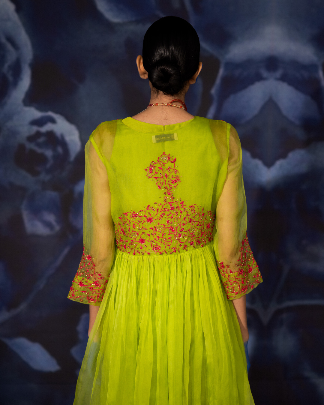 Step into timeless elegance with our Hand Embroidered Green Organza Angrakha Set, a beautiful blend of traditional craftsmanship and contemporary style.